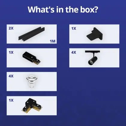 Bright Choice Complete Set 1-Phase Rail L 1 x 1 Meter Black | incl. 4x Spot + GU10 2700K 3W Dimmable + End Cap, Power Connector and L -Connector