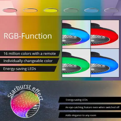 Brilliant Salerno Ceiling Fan Plastic Metal Black 36W 4700lm - 830-865 CCT+RGB | 485mm - Remote Control Dimmable