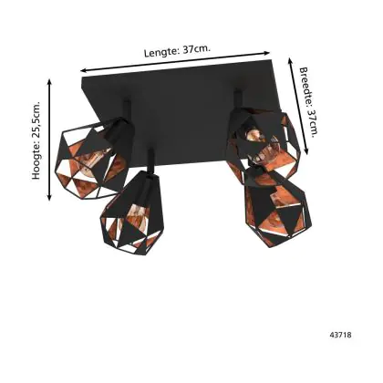 Eglo Ceiling Light Carlton 7 Steel Black Copper | IP20 - Suitable for 4x E27
