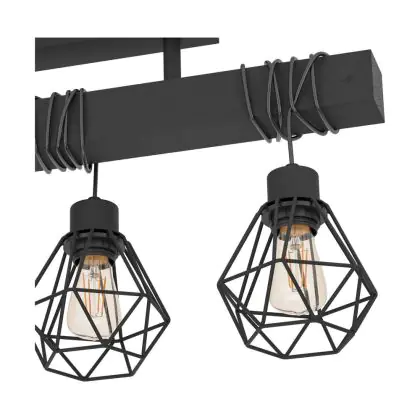 Eglo Ceiling Light Townshend 5 Steel Wood Black | IP20 - Suitable for 3x E27