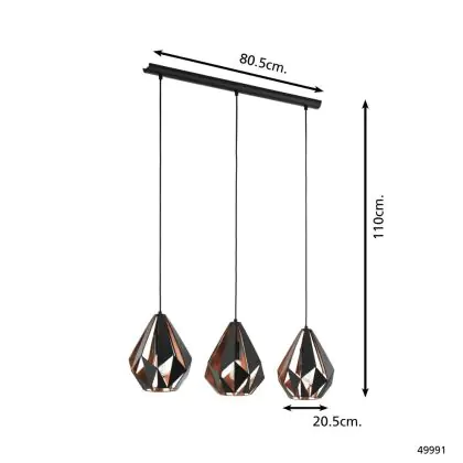 Eglo Pendant Carlton 1 Black, Copper | Suitable for 3x E27