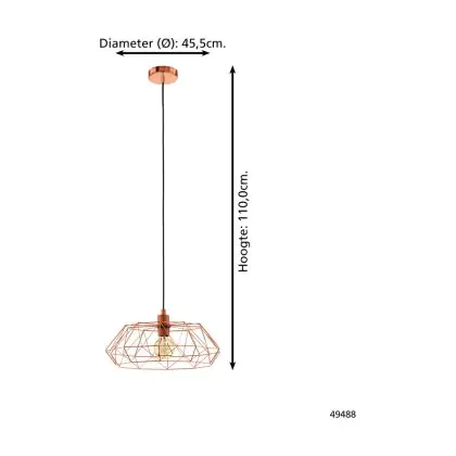 Eglo Pendant Carlton 2 Steel Copper | IP20 - Suitable for 1x E27