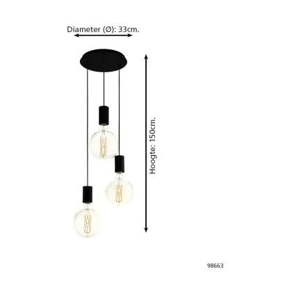 Eglo Pendant Pozueta Steel Black | IP20 - Suitable for 3x E27
