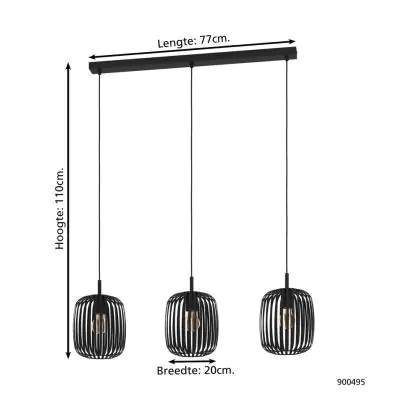 Eglo Pendant Romazzina Steel Black | IP20 - Suitable for 3x E27