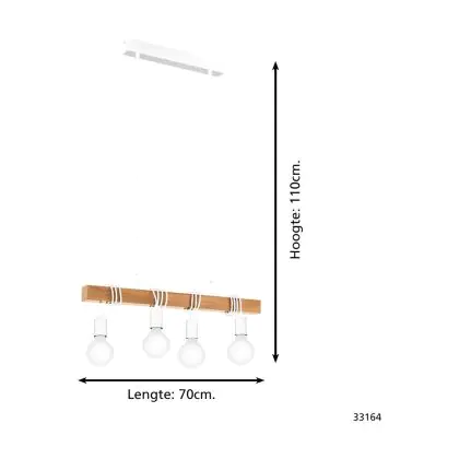 Eglo Pendant Townshend Steel White Wood | IP20 - Suitable for 4x E27