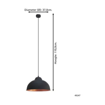 Eglo Pendant Truro 2 Steel Black Copper | IP20 - Suitable for 1x E27