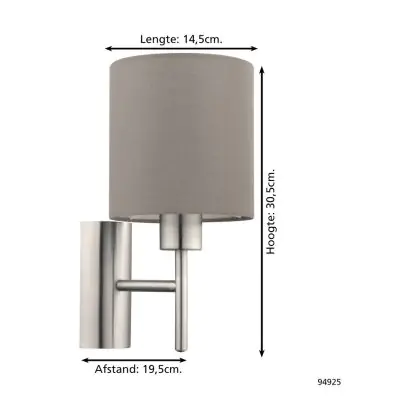 Eglo Wall Light Pasteri Steel Satin Nickel | IP20 - Suitable for 1x E27
