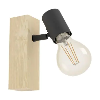 Eglo Wall Light Townshend 3 Wood Steel Black | IP20 - Suitable for 1x E27