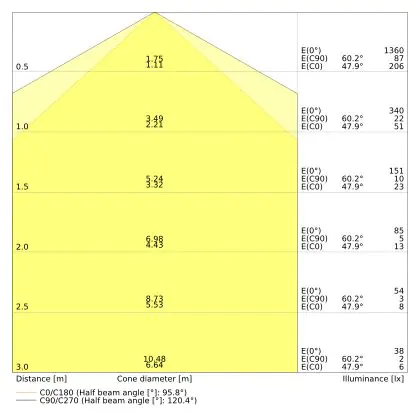The Luminous Efficacy (lm/W) indicates how efficiently a light source uses energy. We divide the number of lumens by the wattage. The higher the number, the more efficient a product is in terms of energy consumption. LED lighting has a considerably higher lumen/Watt ratio than conventional lighting.