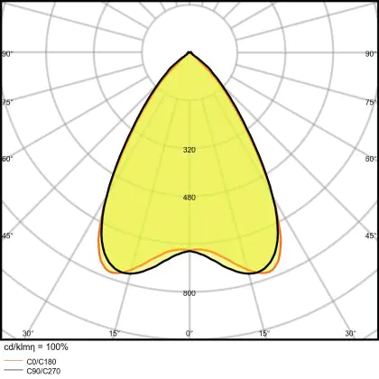 The Luminous Efficacy (lm/W) indicates how efficiently a light source uses energy. We divide the number of lumens by the wattage. The higher the number, the more efficient a product is in terms of energy consumption. LED lighting has a considerably higher lumen/Watt ratio than conventional lighting.