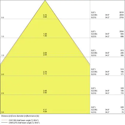 ![]() The colour code is a combination of colour rendering (CRI) and light colour (Kelvin). The first number indicates the colour rendering (1 = very poor colour rendering, 9 = maximum colour fastness). The second and third number contains the light colour. Example: the colour code 830 consists of good colour rendering (8) and warm white light (3000K). |
