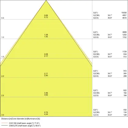 ![]() The colour code is a combination of colour rendering (CRI) and light colour (Kelvin). The first number indicates the colour rendering (1 = very poor colour rendering, 9 = maximum colour fastness). The second and third number contains the light colour. Example: the colour code 830 consists of good colour rendering (8) and warm white light (3000K). |