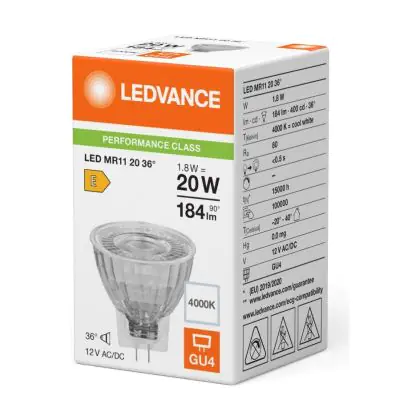Ledvance LED MR11 Gu4 Reflector 1.8W 184lm 36D - 840 Cool White | Replaces 20W