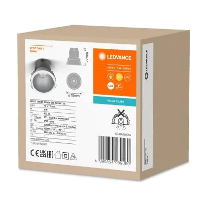 Ledvance LED Spot Twist Pro Aluminium Silver Reflector 5W 400lm 30D - 830 Warm White | 70mm - Cutout 65mm - IP20