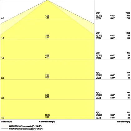 ![]() The colour code is a combination of colour rendering (CRI) and light colour (Kelvin). The first number indicates the colour rendering (1 = very poor colour rendering, 9 = maximum colour fastness). The second and third number contains the light colour. Example: the colour code 830 consists of good colour rendering (8) and warm white light (3000K). |
