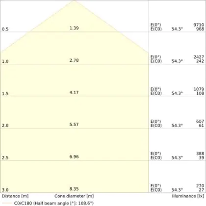 ![]() The colour code is a combination of colour rendering (CRI) and light colour (Kelvin). The first number indicates the colour rendering (1 = very poor colour rendering, 9 = maximum colour fastness). The second and third number contains the light colour. Example: the colour code 830 consists of good colour rendering (8) and warm white light (3000K). |