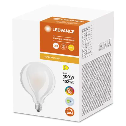Ledvance Superior Classic LED E27 Globe Frosted 95mm 11W 1521lm - 927 Extra Warm White | Best Colour Rendering