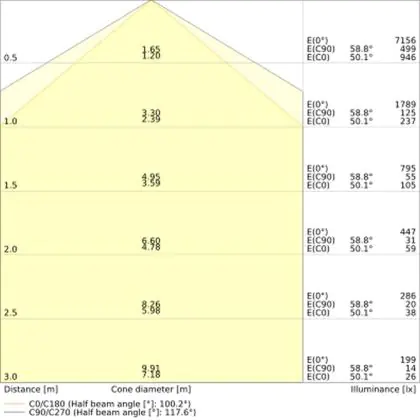 ![]() The colour code is a combination of colour rendering (CRI) and light colour (Kelvin). The first number indicates the colour rendering (1 = very poor colour rendering, 9 = maximum colour fastness). The second and third number contains the light colour. Example: the colour code 830 consists of good colour rendering (8) and warm white light (3000K). |