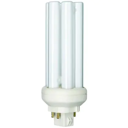 With a colour temperature of 3000K, Philips PL-T TOP 26W 830 4P will provide a warm white light. Philips PL-T TOP 26W 830 4P are very energy efficient: their energy label is classified A. Philips PL-T TOP 26W 830 4P lamps also have a very long lifespan, 13000 hours on average!